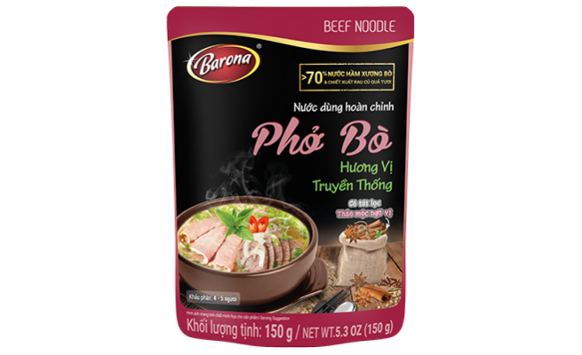 Nước dùng hoàn chỉnh Barona - Phở Bò được dùng để chế biến món Phở Bò mà không cần nêm nếm thêm gia vị nào khác.